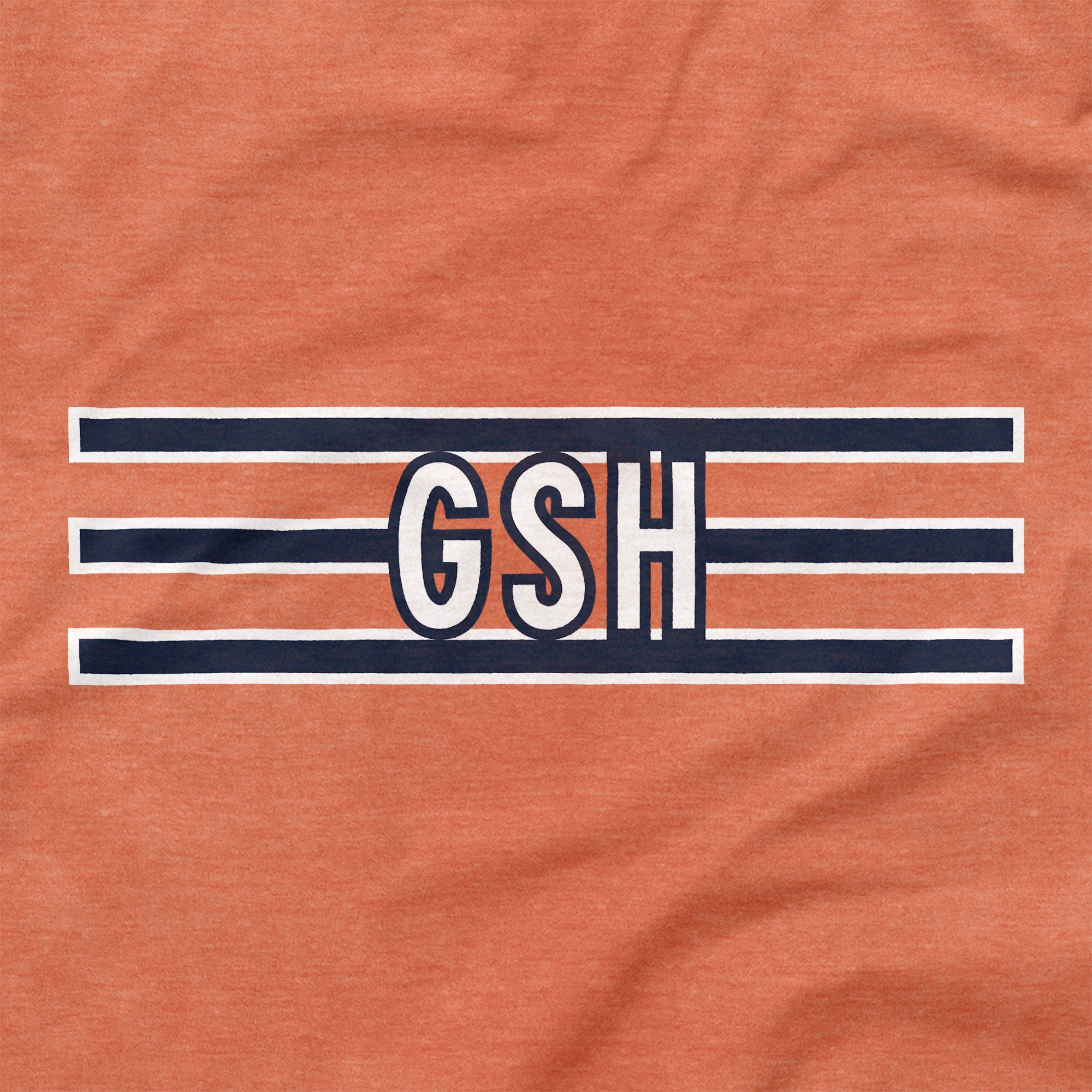 Chicago Bears GSH explained The three letters emblazoned on the jerseys of the Chicago Bears is a tribute to franchise icon George S Halas. Chicago Bears players wear the initials GSH prominently displayed in the orange stripes on the left sleeve of their jersey. Halas the former Bears player coach and owner who helped to found the NFL.